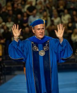 The chair of Faculty Senate carries the mace as the official University Mace Bearer. The mace symbolizes academic authority. The ÌìÌì³Ô¹Ï mace was created and crafted by alumnus Michael V. Jaszczak ’98.